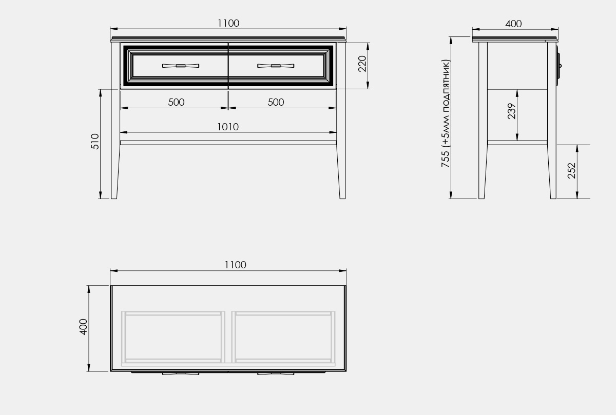 ✅ Ножки и багетные рамы на фасадах изготовлены из массива дуба.