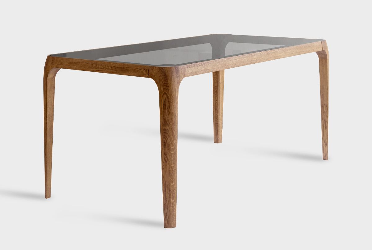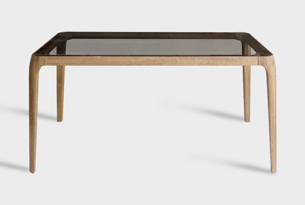 Стол обеденный "Бергамо", дуб натуральный, графит, стекло графит, (.Г000089736)