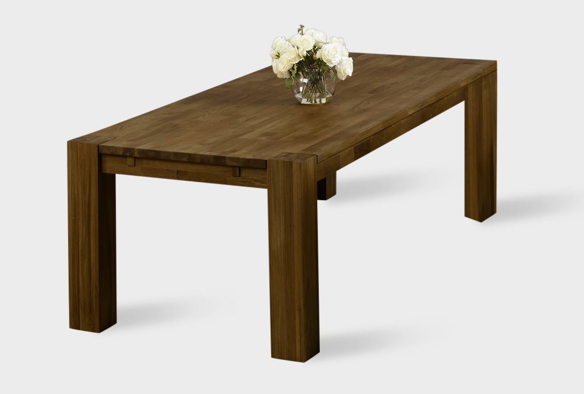 Обеденный стол «Берген» П-03 (1800x900 мм, сечение опор 150х150 мм) в цвете «графит», выполнен из натурального массива дуба, обработанного бейц-маслом. Специально неподобранные бруски подчеркивают природную красоту деревянных изделий. За таким столом приятно собрать всех родных за семейным ужином или посидеть с друзьями по случаю торжества. Особенностью стола является массивные опоры толщиной 15 см.