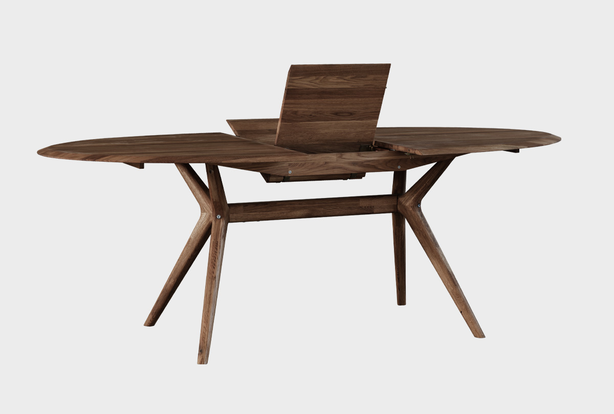 Овальный раскладной обеденный стол «Кармен» (Karmen) в цвете «графит» из массива дуба. Изящный, стильный, функциональный стол, раскладывается при помощи механизма бабочка – европейская фурнитура.
