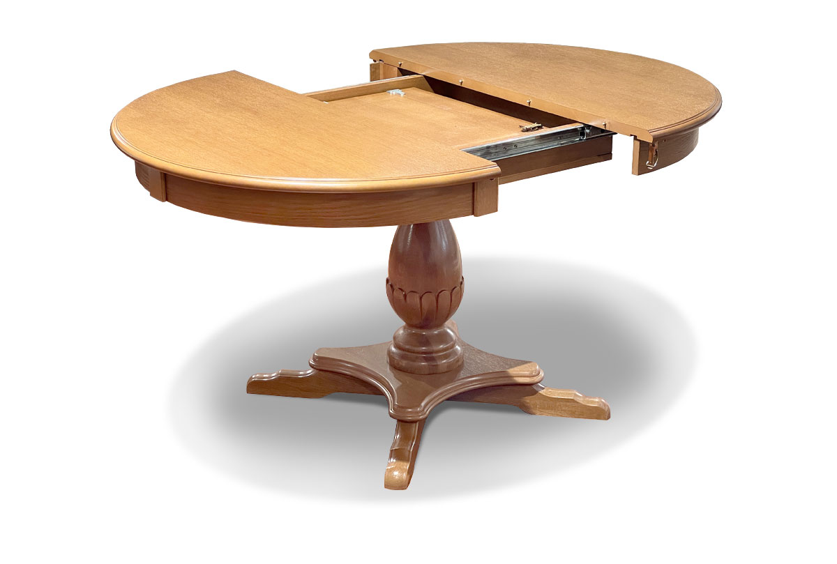 Круглый раскладной обеденный стол «Полонез» (Polonez) из массива и шпона дуба. Размеры стола : Ш1100/1350 х В780 х Г1100 мм.
