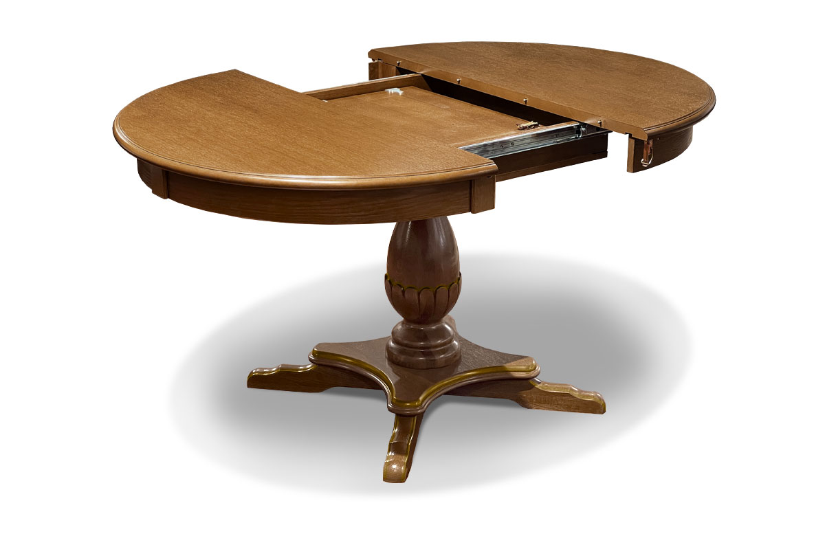 Круглый раскладной обеденный стол «Полонез» (Polonez) из массива и шпона дуба. Размеры стола : Ш1100/1350 х В780 х Г1100 мм.