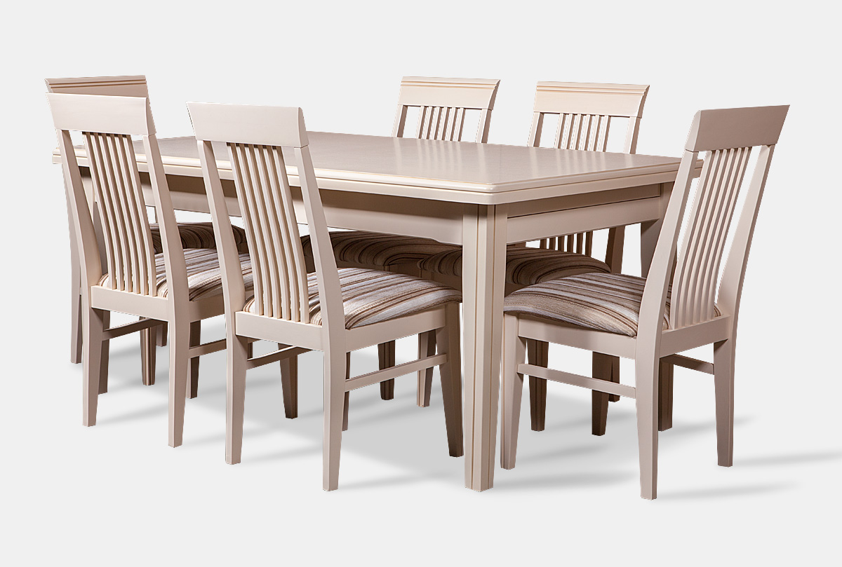 Обеденный стол 61 из коллекции "Престиж" не нарушит гармонию интерьера столовой или кухни в классическом стиле. Используемый материал (массив берёзы и шпон бука), из которого изготовлен стол – залог того, что предмет прослужит долгие годы, радуя своих хозяев не только красотой, но и прочностью. Тёплая цветовое решение - "мокко" - смотрится элегантно и изысканно.