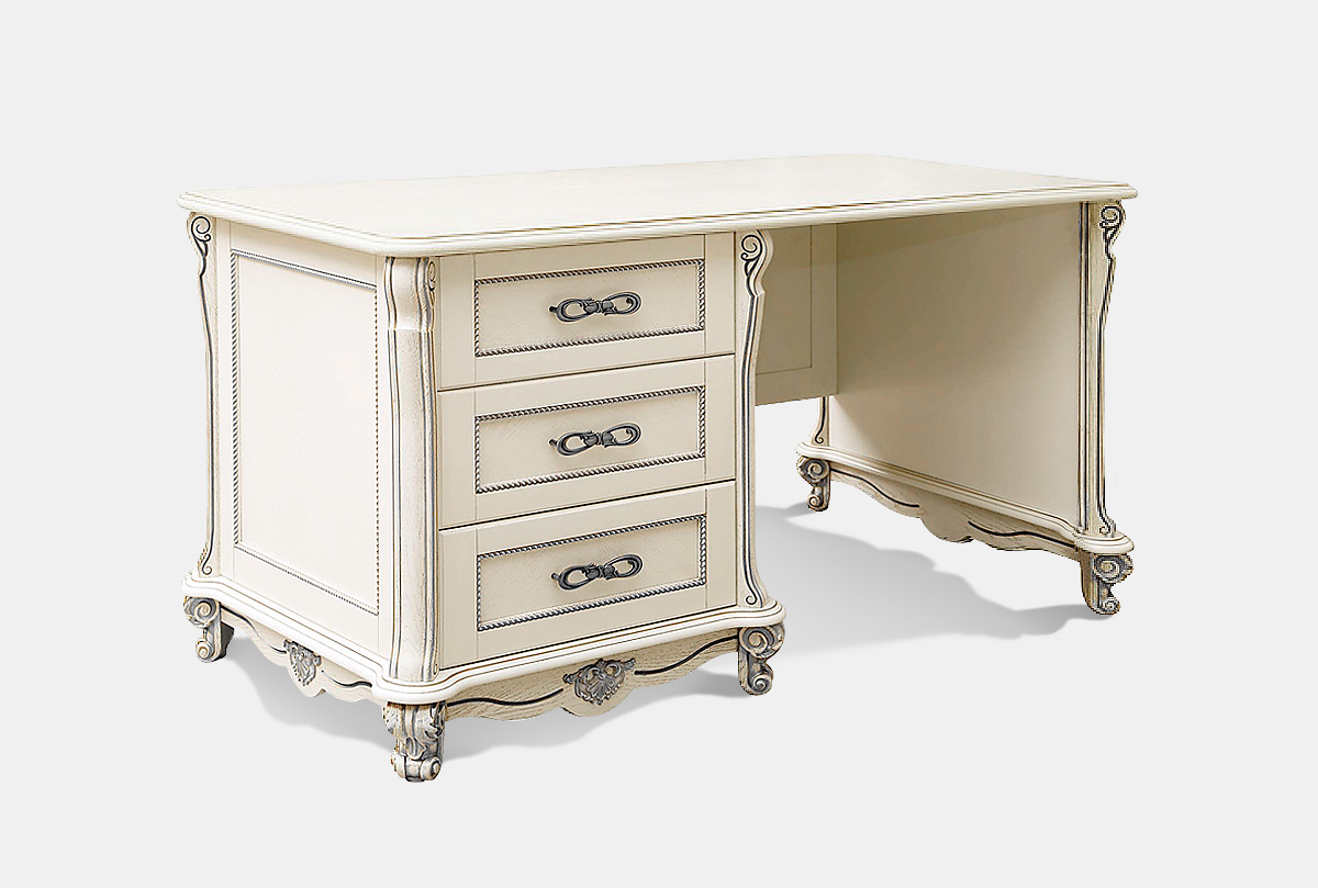 Стол письменный "Алези 1" с ящиками (1 тумба слева), слоновая кость с серебром, (.Г000056720)