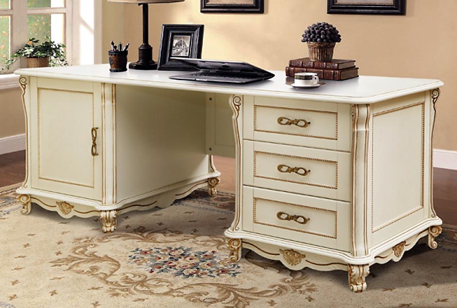 Стол письменный "Алези" с приставкой; слоновая кость с золочением