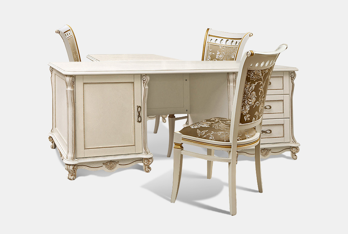 Стол письменный "Алези" с приставкой, слоновая кость с золочением, (.Г000055971)
