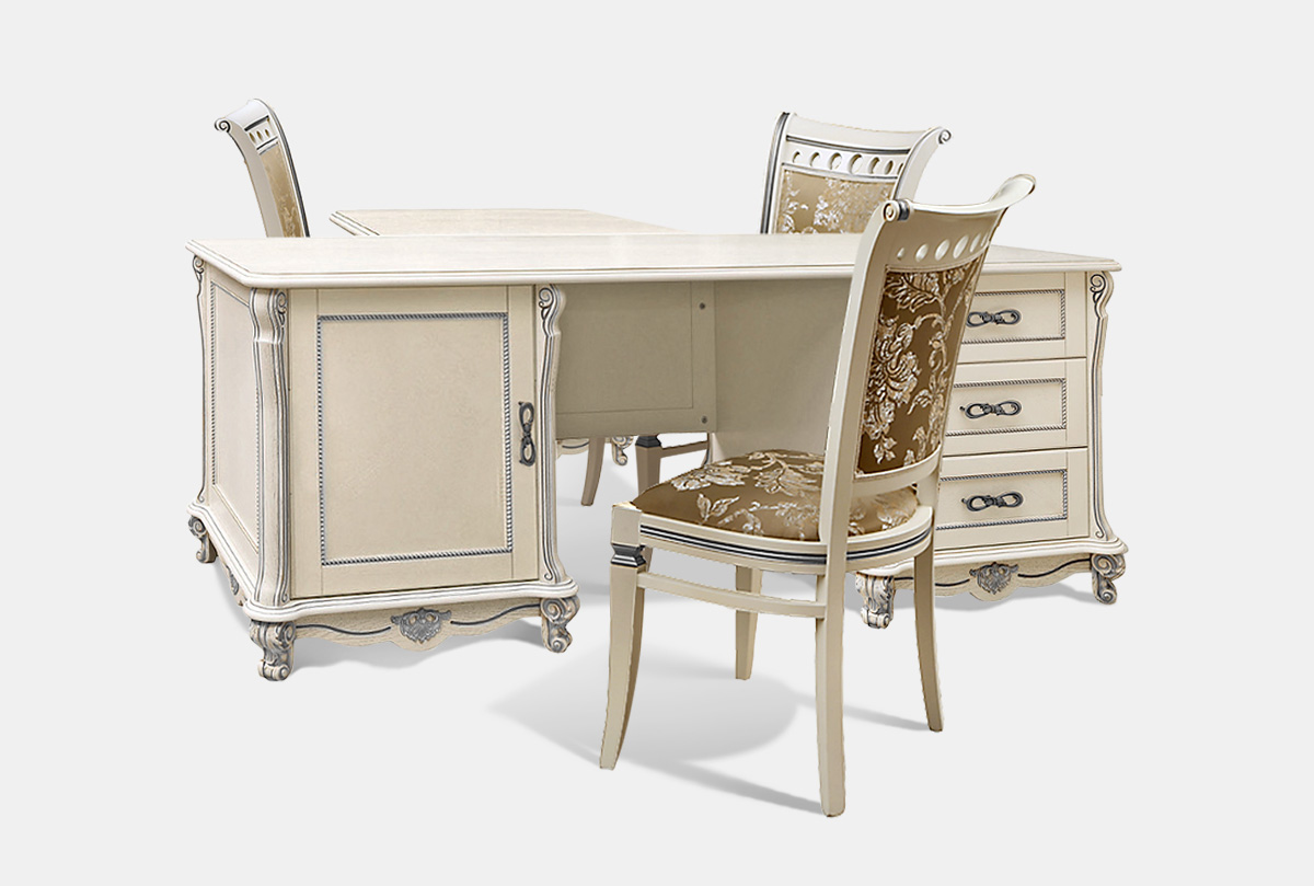 Стол письменный "Алези" с приставкой, слоновая кость с серебром, (.Г000056723)