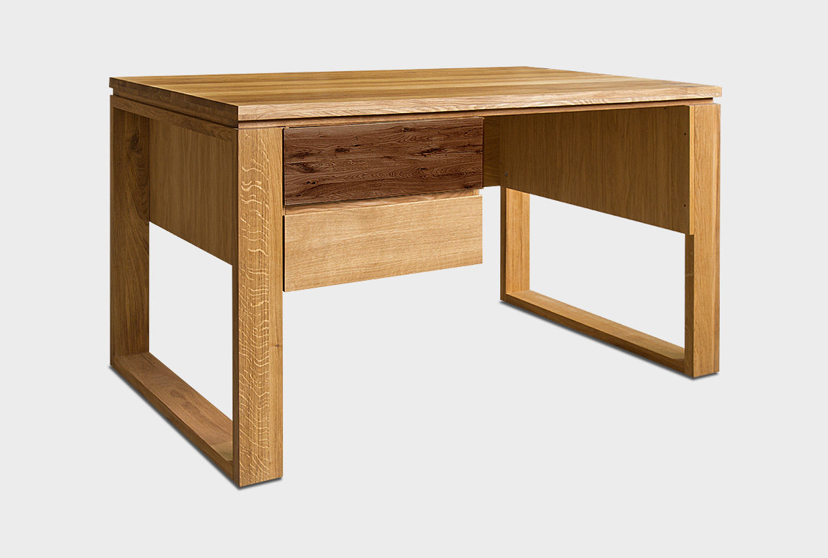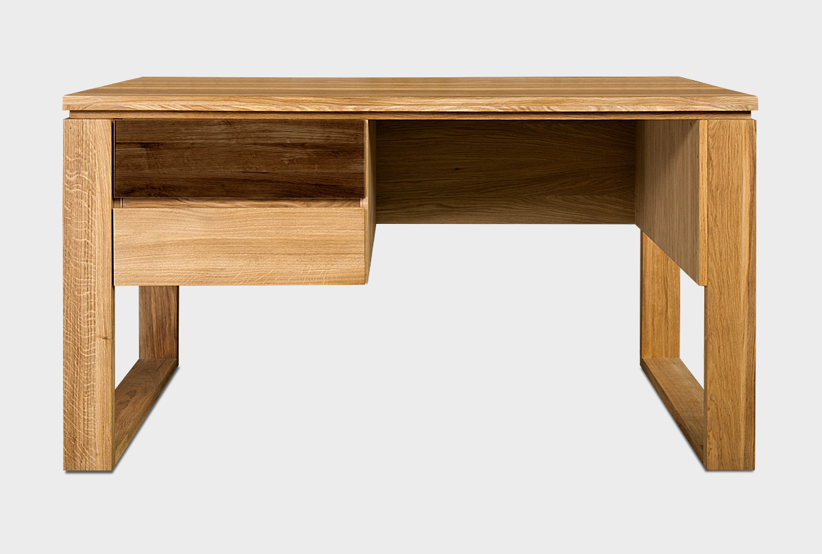 Письменный стол «Берген» В в цвете «бейц-масло, графит» из массива и шпона дуба прекрасно впишется, как в домашний кабинет, так и в детскую или комнату подростка.