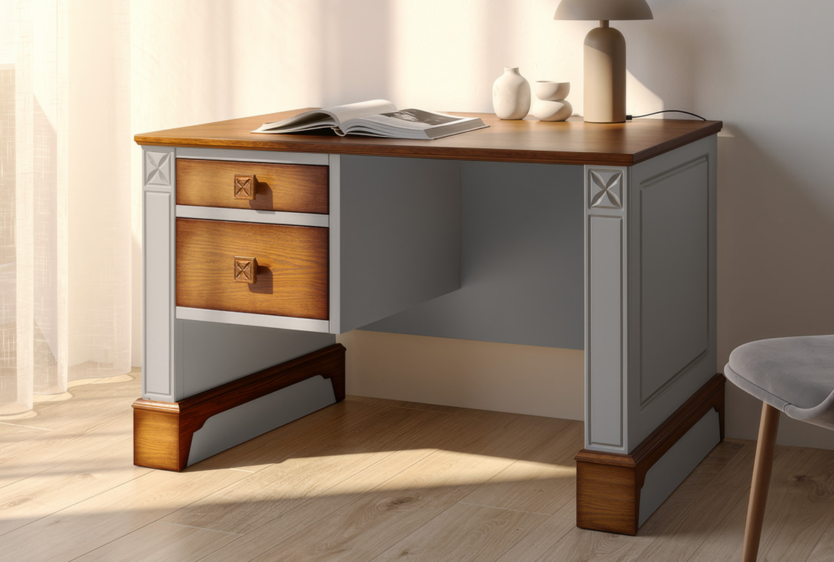 Письменный стол «Бриансон» с одной тумбой слева – добротный и стильный, сочетает в себе оригинальный дизайн и практичность выполнен из массива и шпона дуба, тонированный в оттенок: «муссон+дуб». Стол «Бриансон» оснащен двумя выдвижными вместительными ящиками с направляющими полного выдвижения.