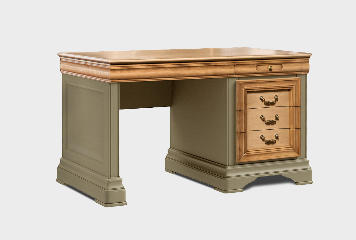 Элегантный письменный стол «Оливия» в цвете «олива» отлично впишется в классическую спальню или кабинет и придется по вкусу всем любителям уникального дизайна. Стол оснащен тремя вместительными выдвижными ящиками, где можно удобно расположить бумаги или письменные принадлежности. Письменный стол обладает широкой столешницей размером 80 см, которая прекрасно подойдет для рабочего компьютера, за такой столешницей всегда будет комфортно и свободно работать или делать уроки.