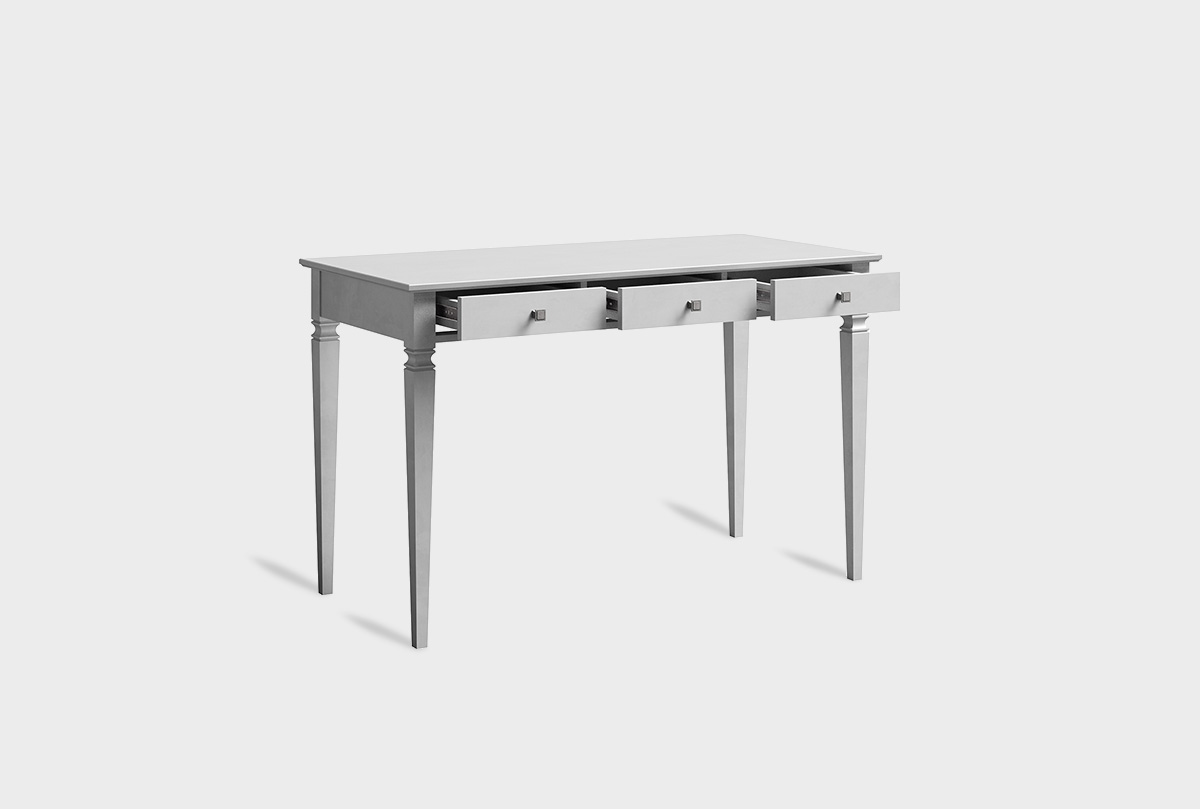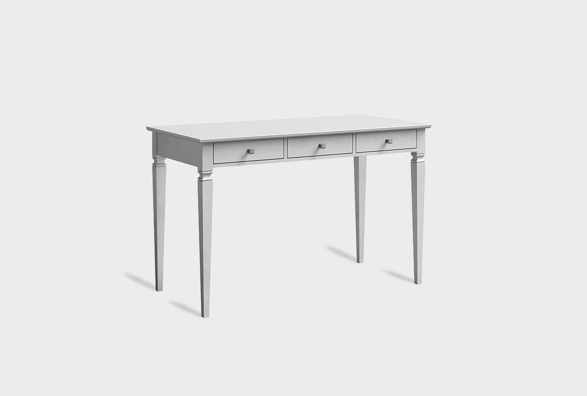 Письменный стол «Ольса-С» 003 — это воплощение классической элегантности и безупречной функциональности для вашего дома. Изготовленный из прочного массива сосны с благородным покрытием на водной основе, он сохраняет природную теплоту и текстуру дерева, оставаясь экологически безопасным. Широкая столешница создает идеальное пространство для работы, творчества или учебы, а три плавно выдвигающихся ящика с премиальной фурнитурой и классическими ручками состаренного серебра надежно организуют все необходимое.