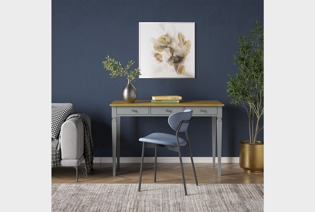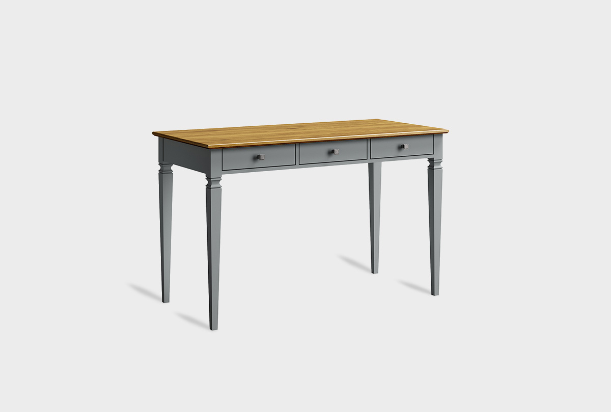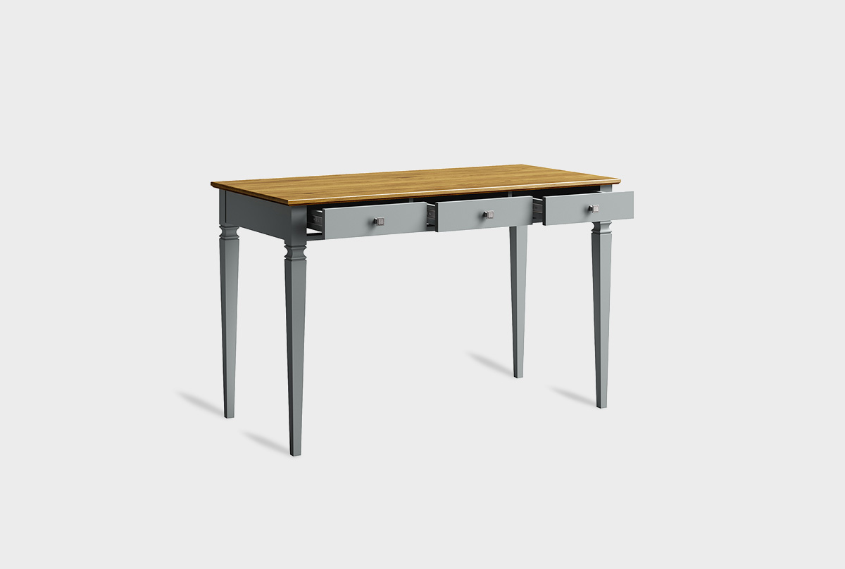 Письменный стол «Ольса-С» 003 — это воплощение классической элегантности и безупречной функциональности для вашего дома. Изготовленный из прочного массива сосны с благородным покрытием на водной основе, он сохраняет природную теплоту и текстуру дерева, оставаясь экологически безопасным. Широкая столешница создает идеальное пространство для работы, творчества или учебы, а три плавно выдвигающихся ящика с премиальной фурнитурой и классическими ручками состаренного серебра надежно организуют все необходимое.