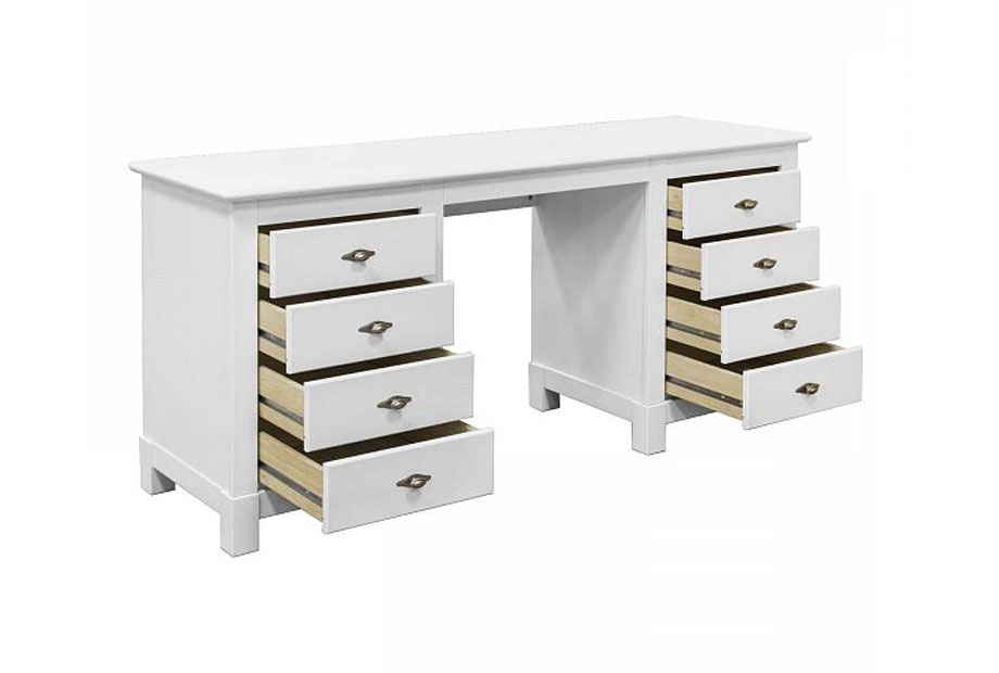 Двухтумбовый письменный стол «Рауна» выполнен из сертифицированного массива сосны (FSC®). Привлекательный дизайн подчеркивает видимая структура дерева. В результате офисная мебель гармонично вписывается практически в любой дизайн интерьера. Просторная рабочая поверхность позволяет разложить все необходимые офисные принадлежности, кроме того достаточно места и для компьютера с аксессуарами. Таким образом, письменный стол отлично впишется как в кабинет, так и для детской и подростковой комнаты. Благодаря обширному пространству для хранения в ящиках, уместятся все документы, заметки и письменные принадлежности. Ящики расположены на металлических направляющих. Ручки имеют привлекательный винтажный оттенок.