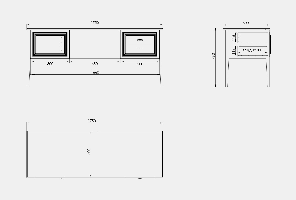 ✅ Ножки и багетные рамы на фасадах изготовлены из массива дуба.