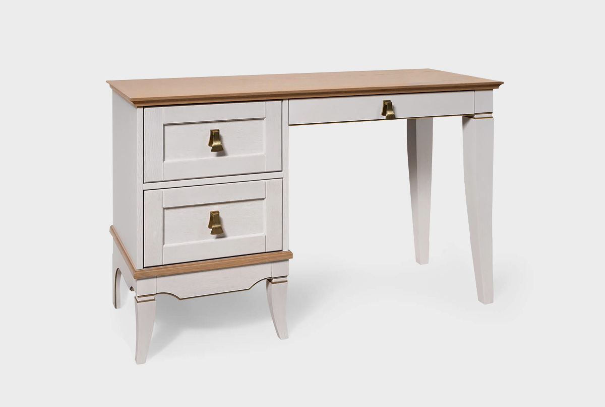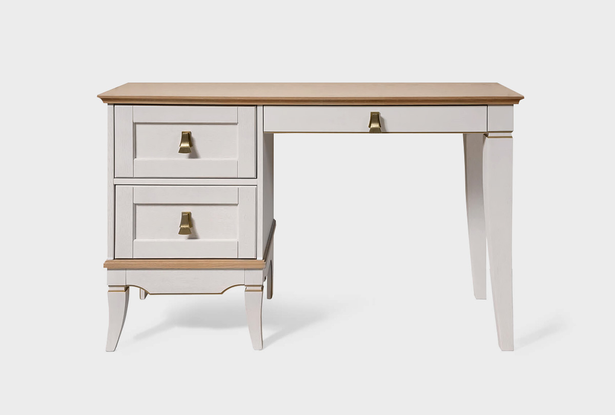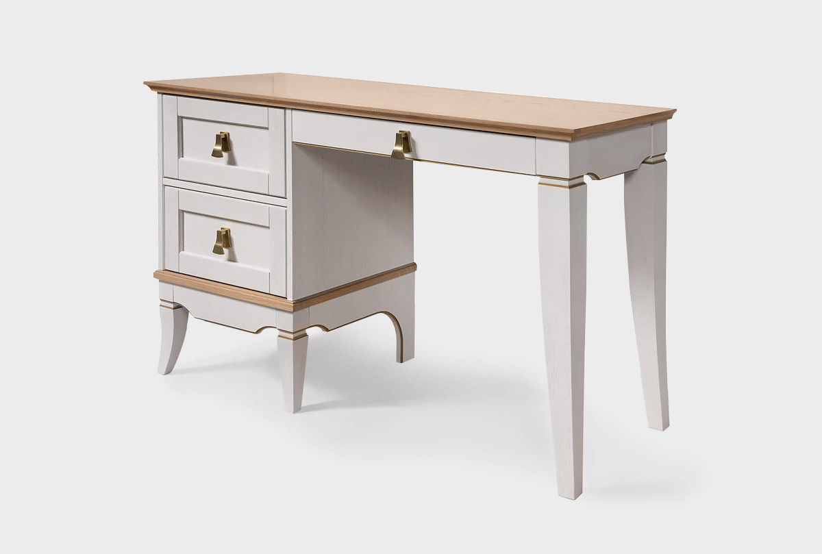Стол письменный с одной тумбой слева «Стюарт» для Вашей гостиной в классическом стиле, в цвете "персидский жемчуг, натуральный дуб".