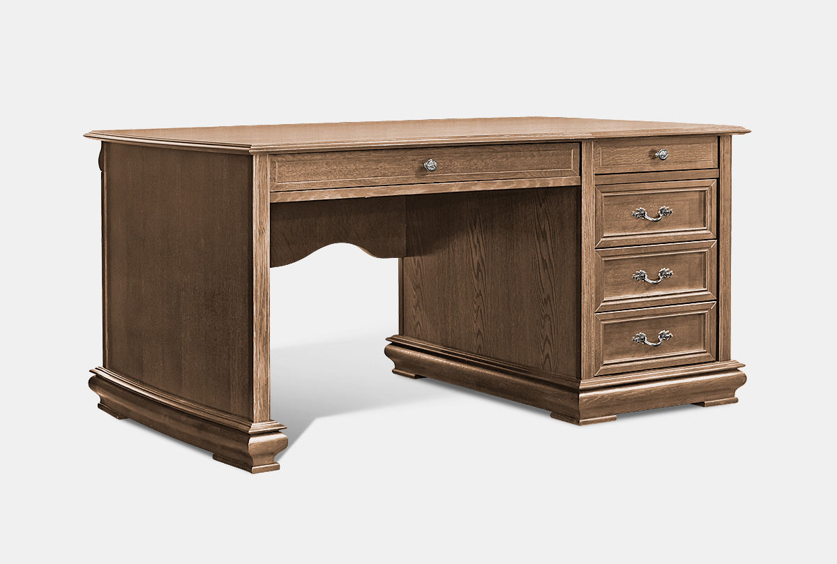 Письменный стол «Тэфи» с одной тумбой справа в цвете «классик» исполнен в классическом стиле и прекрасно впишется в интерьер домашнего кабинета. Благодаря массиву дуба стол выглядит основательно и настраивает на полную сосредоточенность, а работа за ним приносит истинное удовольствие. Выдвижные ящички радуют мягкой велюровой отделкой, а доставать предметы из них удобно как правшам, так и левшам, поскольку стол выполнен в двух конфигурациях: с тумбой справа и с тумбой слева.