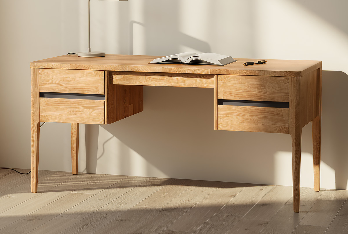 ✅ Стол изготовлен из комбинации материалов - массива дуба и эмали. Из массива дуба изготовлены ноги, столешница, корпус ящиков, фасады.