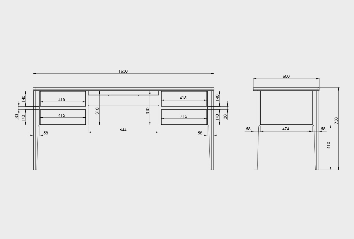 ✅ Стол оснащен двумя тумбами и выдвижными ящиками для различных мелочей.