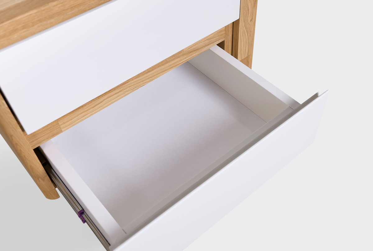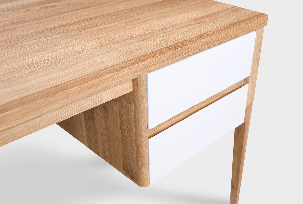 ✅ Стол изготовлен из комбинации материалов - массива дуба и эмали. Из массива дуба изготовлены ноги, столешница, корпус ящиков.