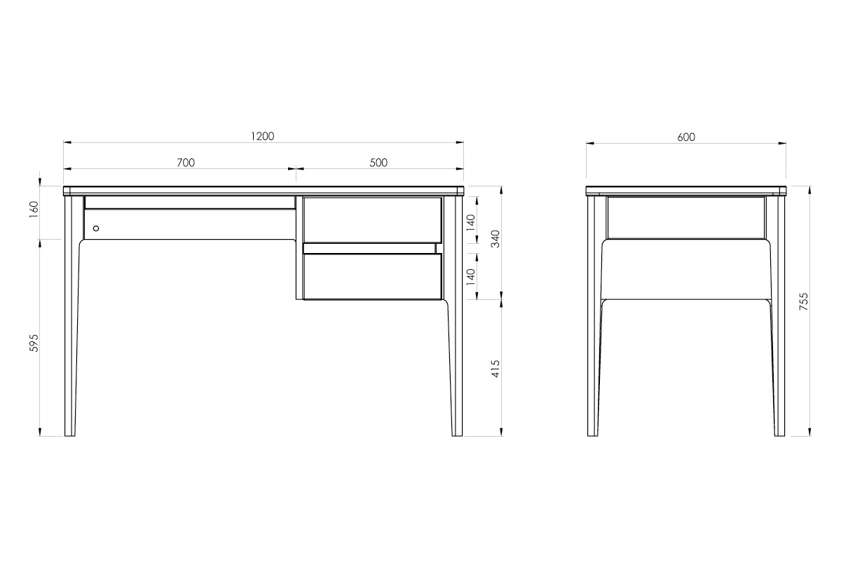 ✅ Стол оснащен двумя выдвижными ящиками для различных мелочей.
