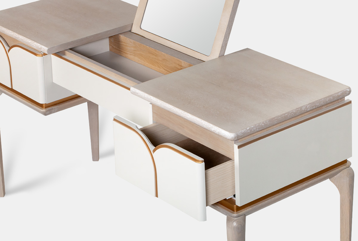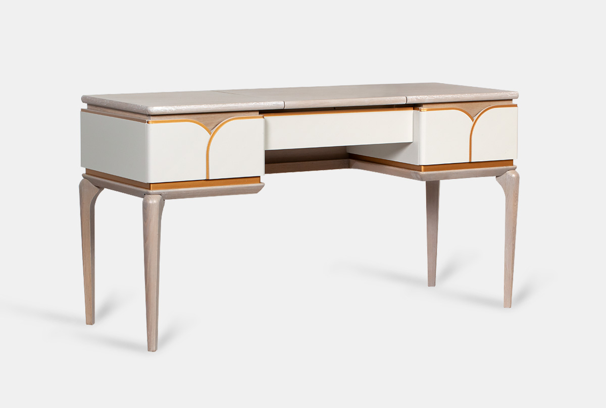 Стол туалетный "Алекса", айвори+жемчужный дуб, золотая патина, (.Г000073493)