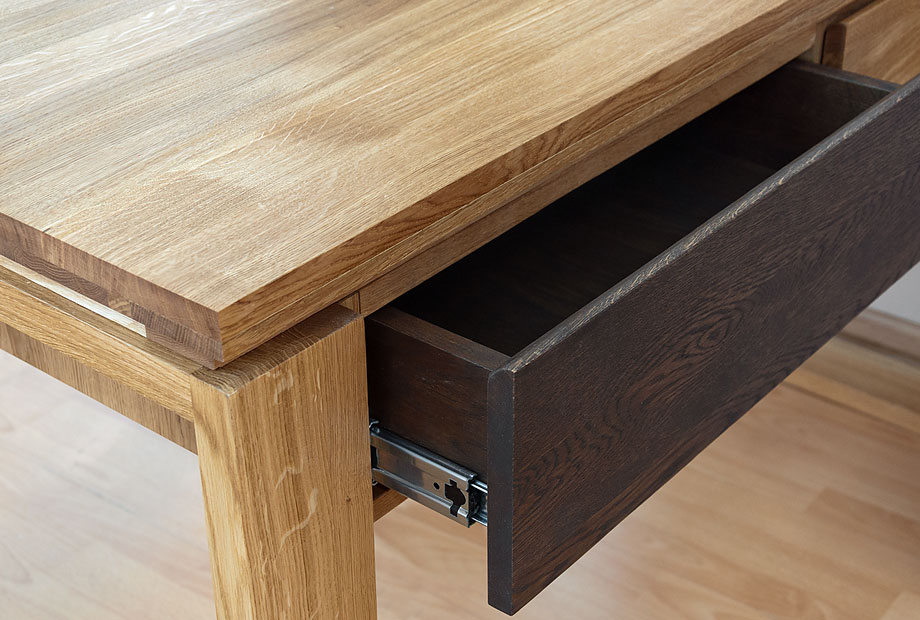 Стол туалетный «Берген» (Bergen) в цвете «бейц-масло, графит» выполнен из массива и натурального шпона дуба. Может использоваться как письменный стол.