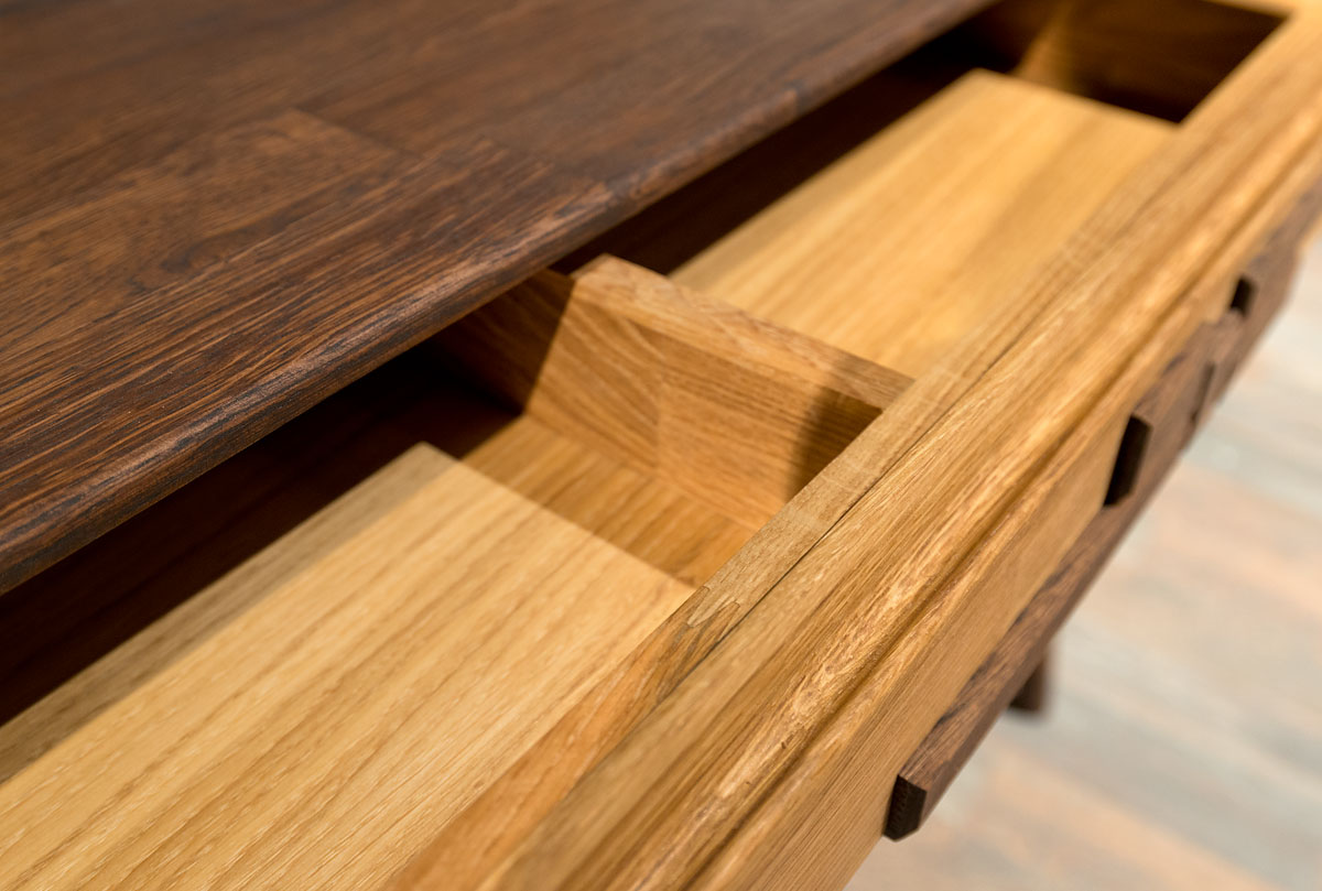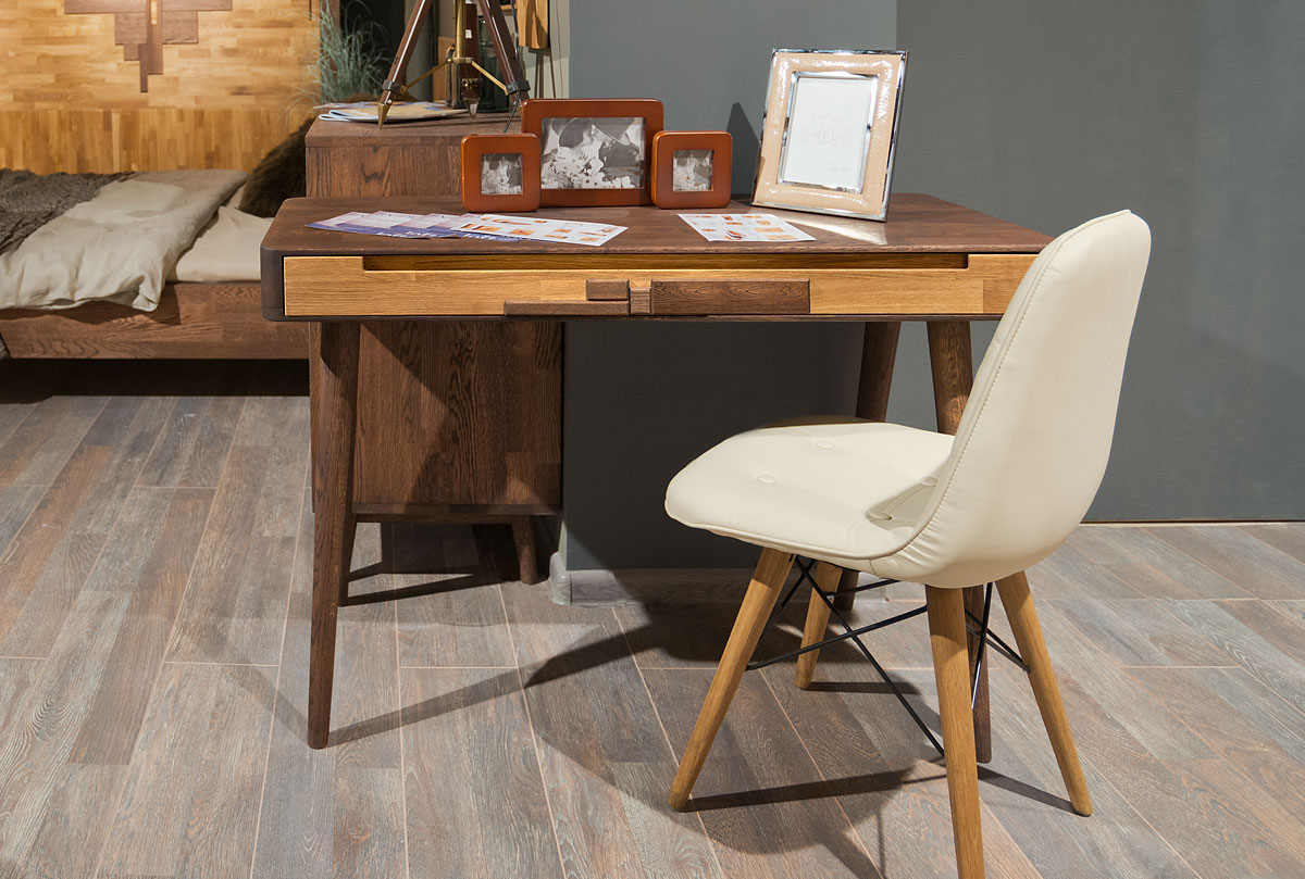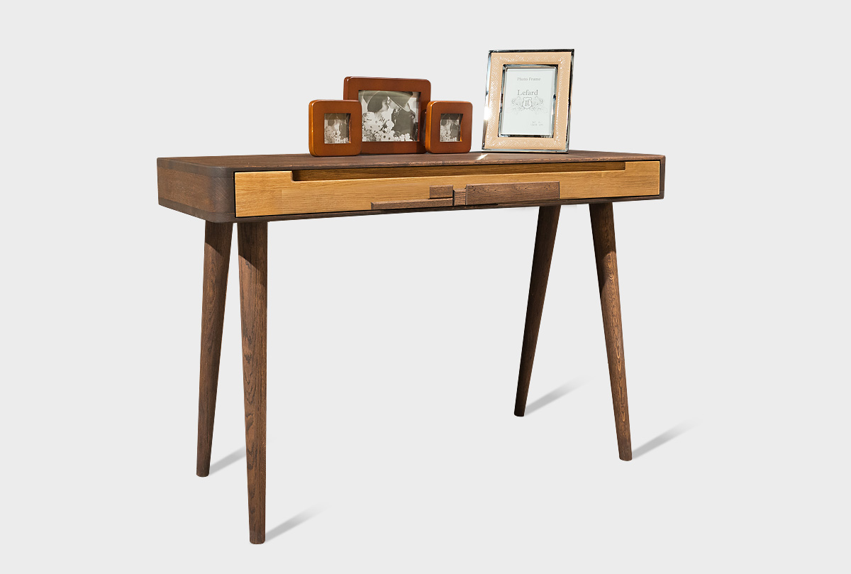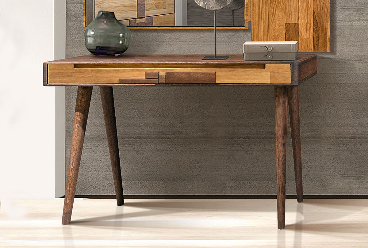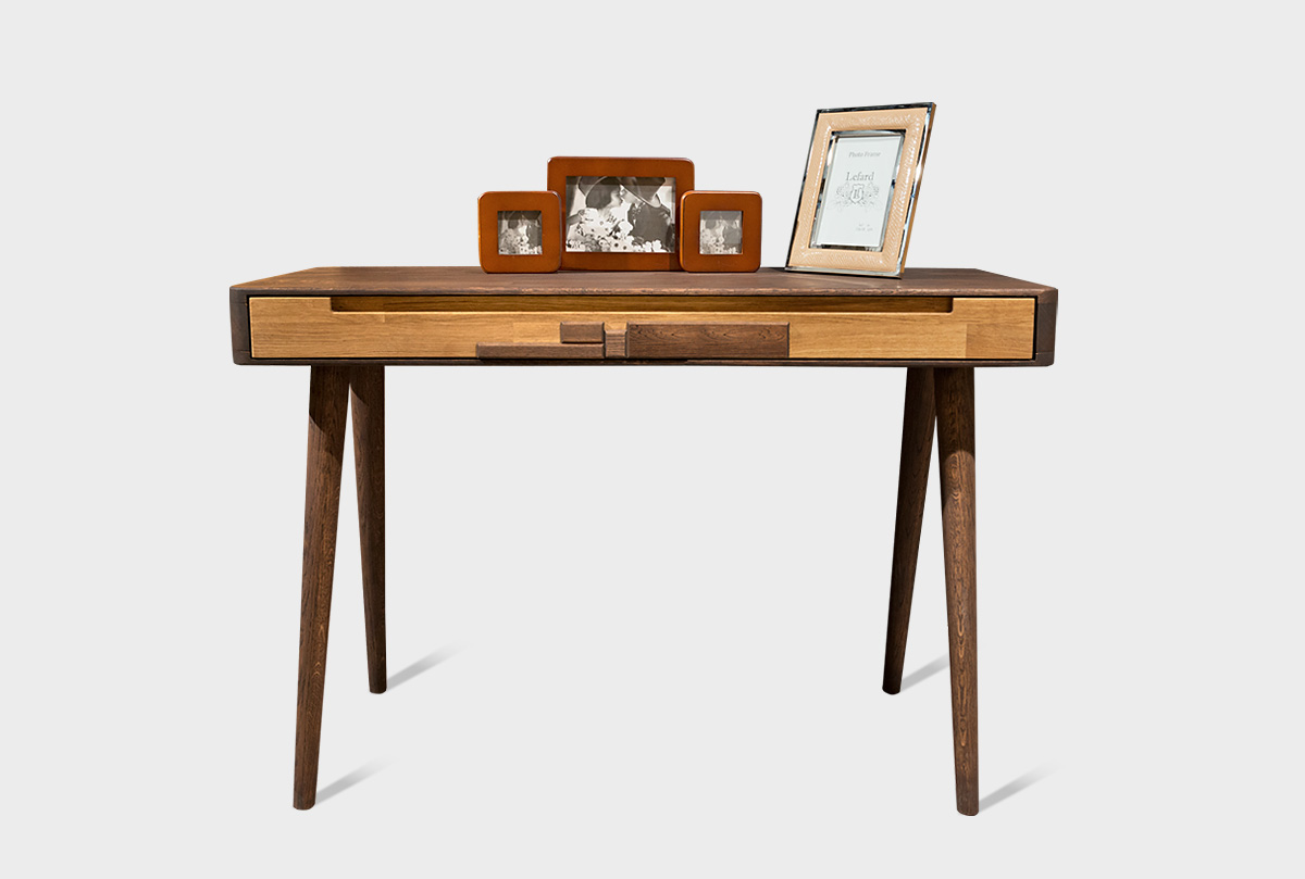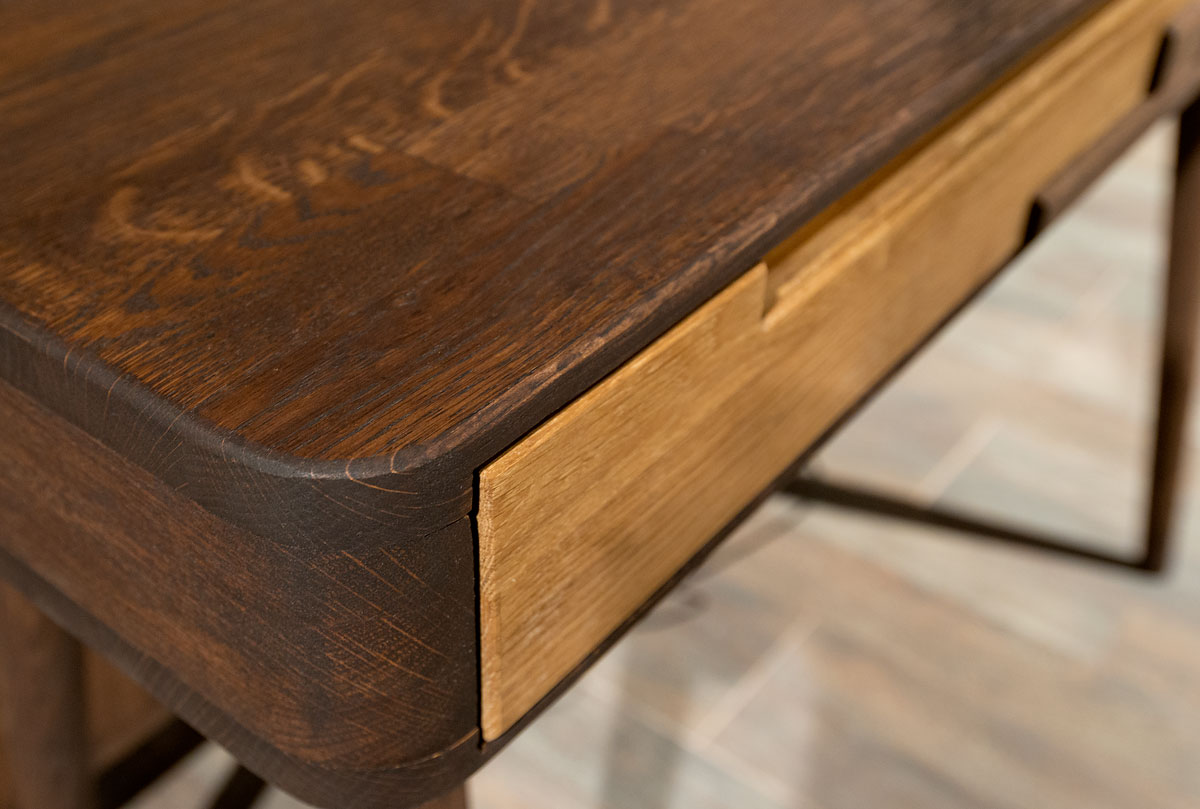 Туалетный столик их коллекции «Ирвинг Дизайн» в цвете «графит, бейц-масло» изготовлен из массива дуба. Может использоваться как письменный стол