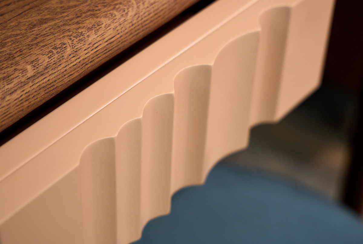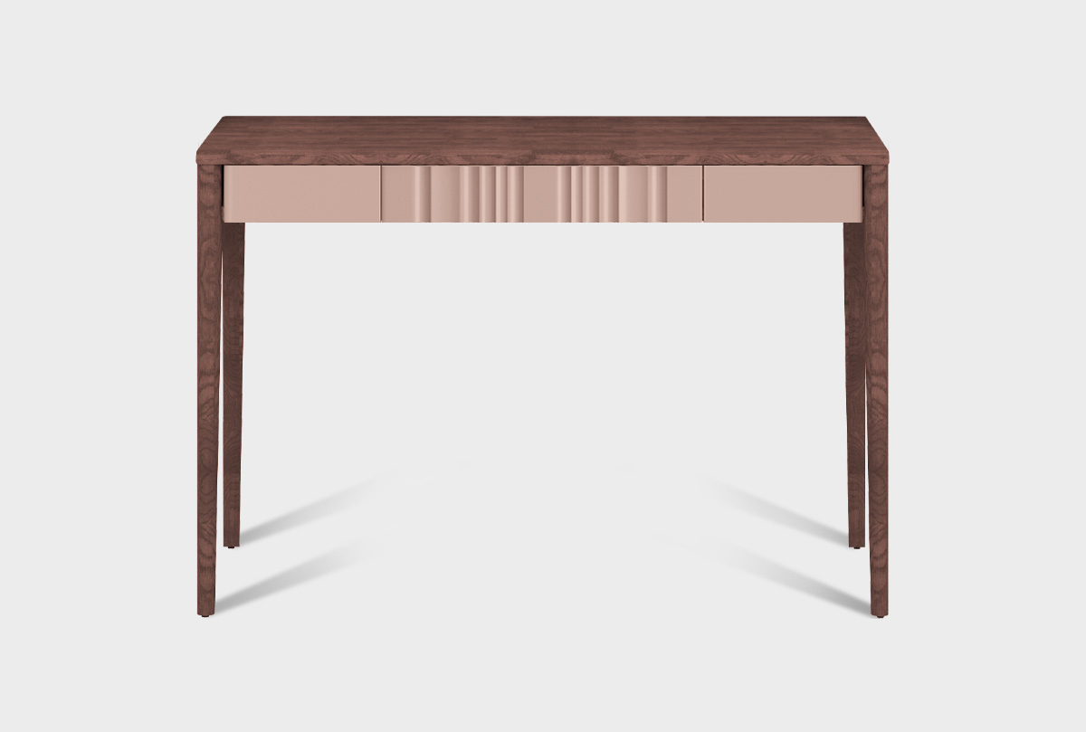 Этот стол придаст любой спальне изысканность и лёгкость. Высокие ножки зрительно облегчают пространство, а волнообразный фасад задаёт декоративный ритм. Особенно красиво сочетается с мягким текстилем и светлым фоном.