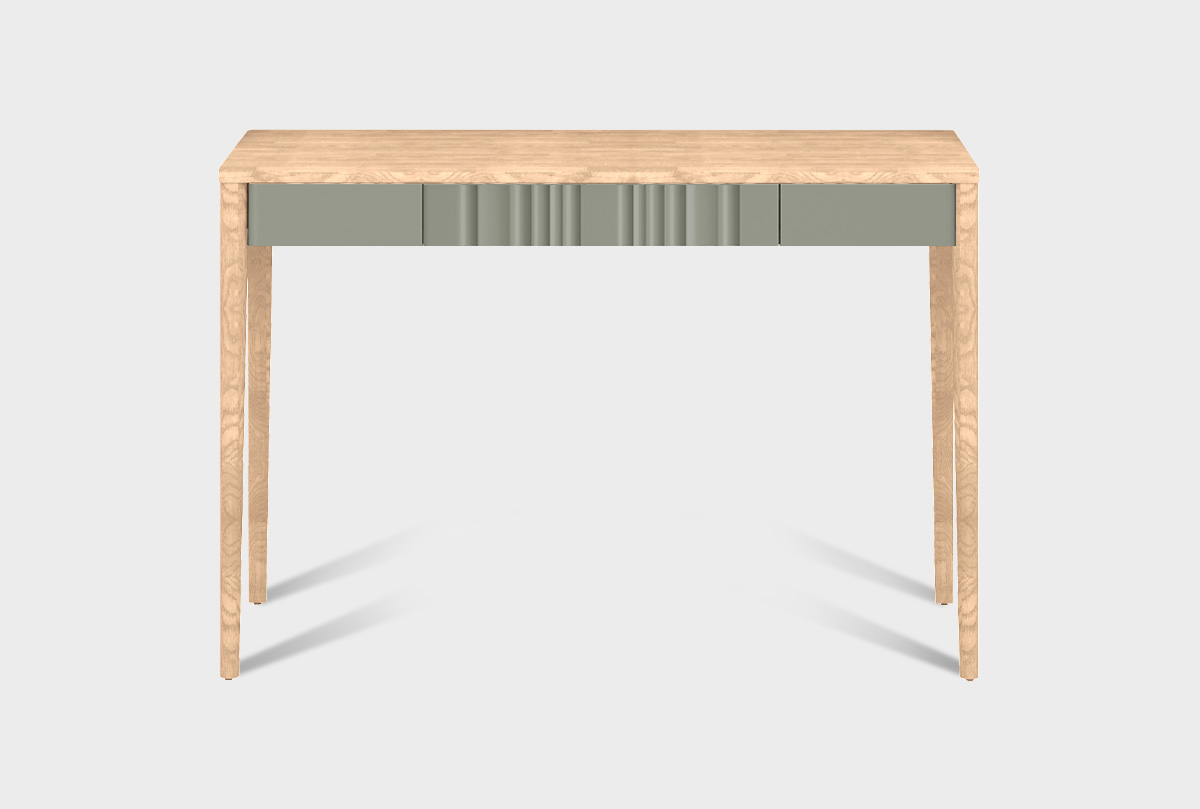 Этот стол придаст любой спальне изысканность и лёгкость. Высокие ножки зрительно облегчают пространство, а волнообразный фасад задаёт декоративный ритм. Особенно красиво сочетается с мягким текстилем и светлым фоном.