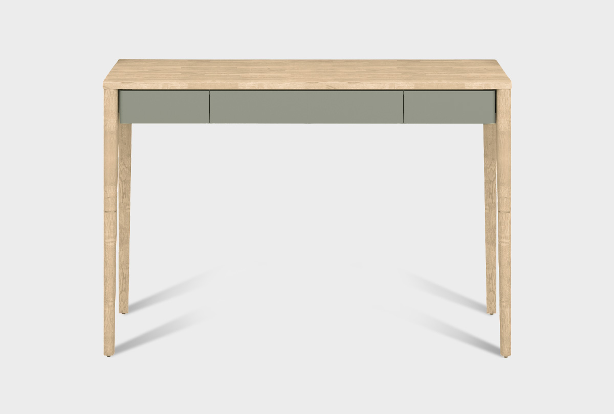 Стол туалетный «Меридиан» (с декором) из дуба с тремя выдвижными ящиками. Корпус шкафа выполнен в цвете «персиковое масло», а фасад — «шалфей».