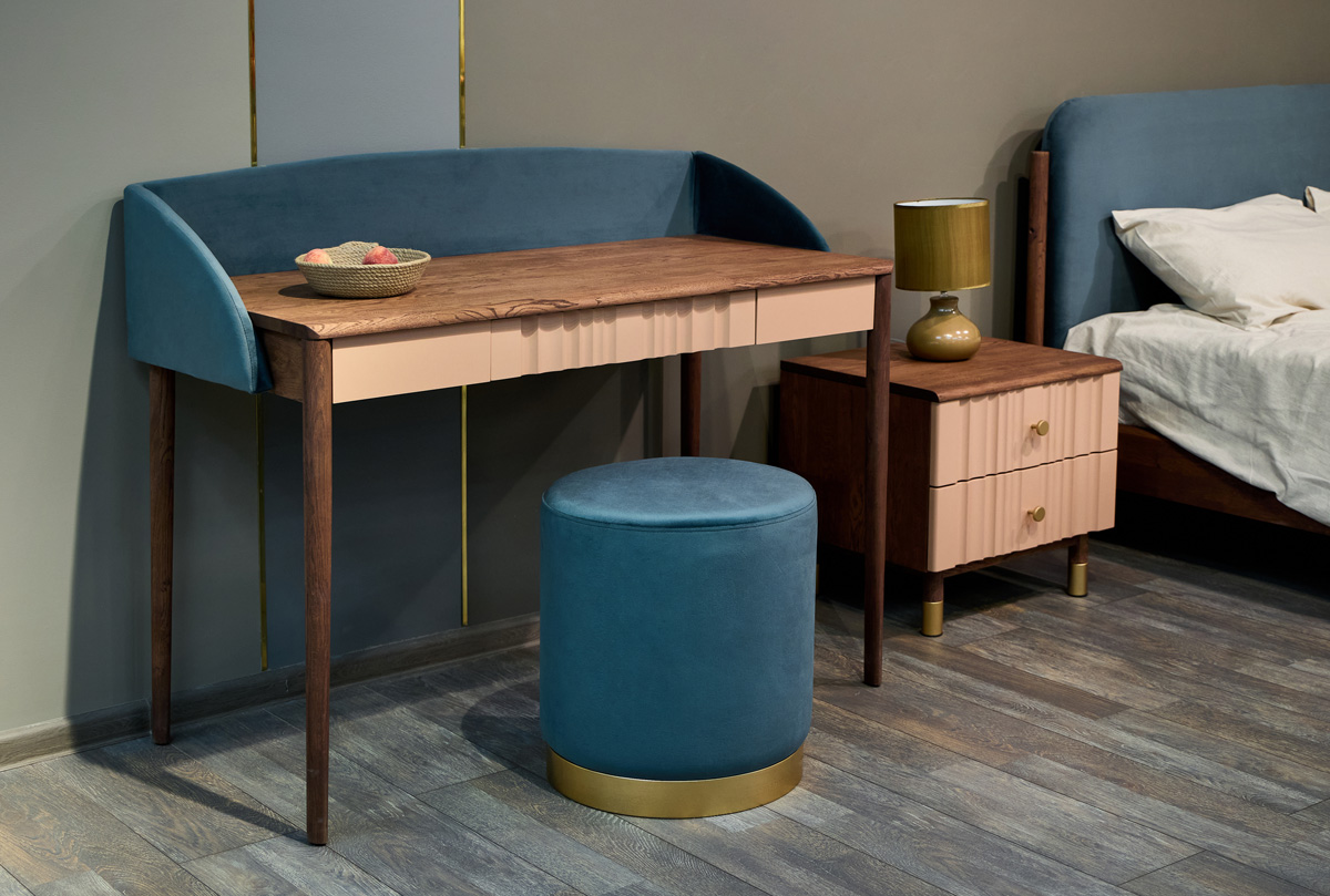 Туалетный стол «Меридиан» легко интегрируется в любую зону спальни. Его высокая посадка на ножках и мягкий элемент придают образу лёгкость и домашний уют. Особенно хорошо смотрится в ансамбле с кроватью и комодами коллекции «Меридиан».