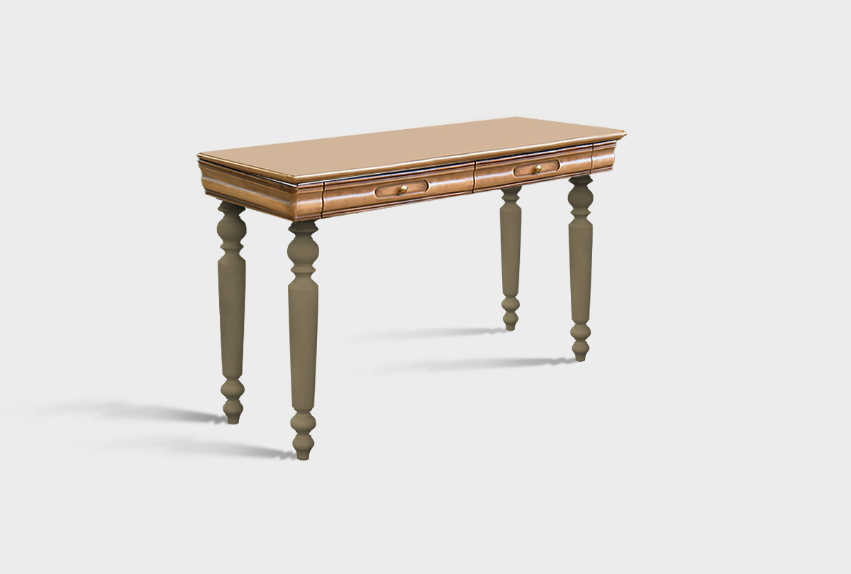 Туалетный столик «Оливия» в цвете «олива» в сочетании с зеркалом из этой же коллекции подарит вам ощущение исключительности и особенности. Изящные точеные ножки в цвете олива с ящиками деликатно вписанными в столешницу натурального цвета с темной патиной превращают столик в незаменимый предмет любой спальни. Туалетный столик можно использовать как по его прямому назначению, так и в качестве письменного стола. Его глубина (50 см) позволит комфортно разместить ноутбук для работы.
