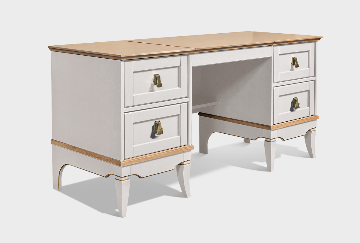 Стол туалетный с зеркалом и двумя тумбами «Стюарт» для Вашей спальни в классическом стиле, в цвете "персидский жемчуг, натуральный дуб"