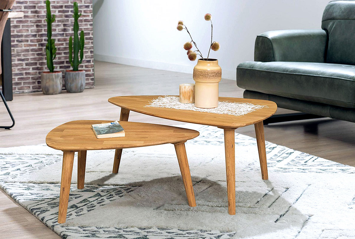 Стол журнальный капля «Арт» 90 в цвете «бейц-масло» из массива дуба в стиле Лофт для квартиры и загородного дома, 900 х 430 х 597 мм.