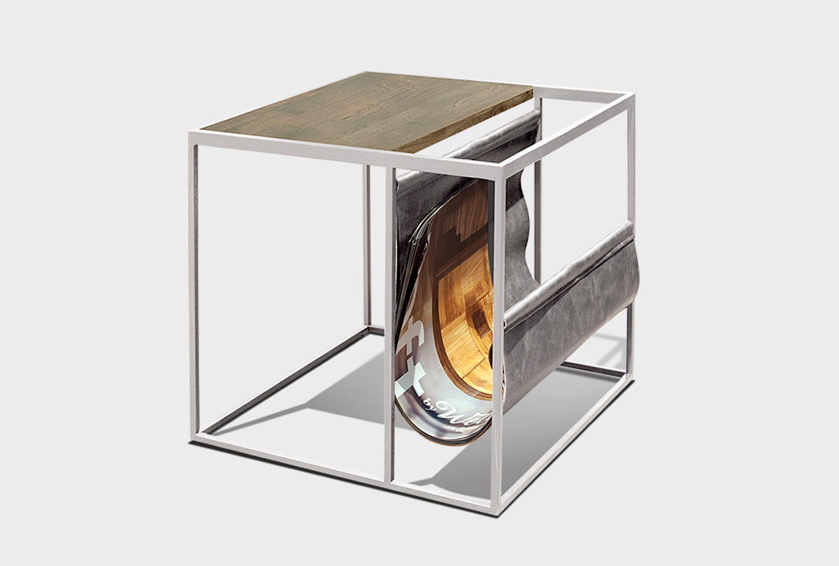 Стол журнальный "Арт" c газетницей, серый дуб + белый металл, (.Г000049904)