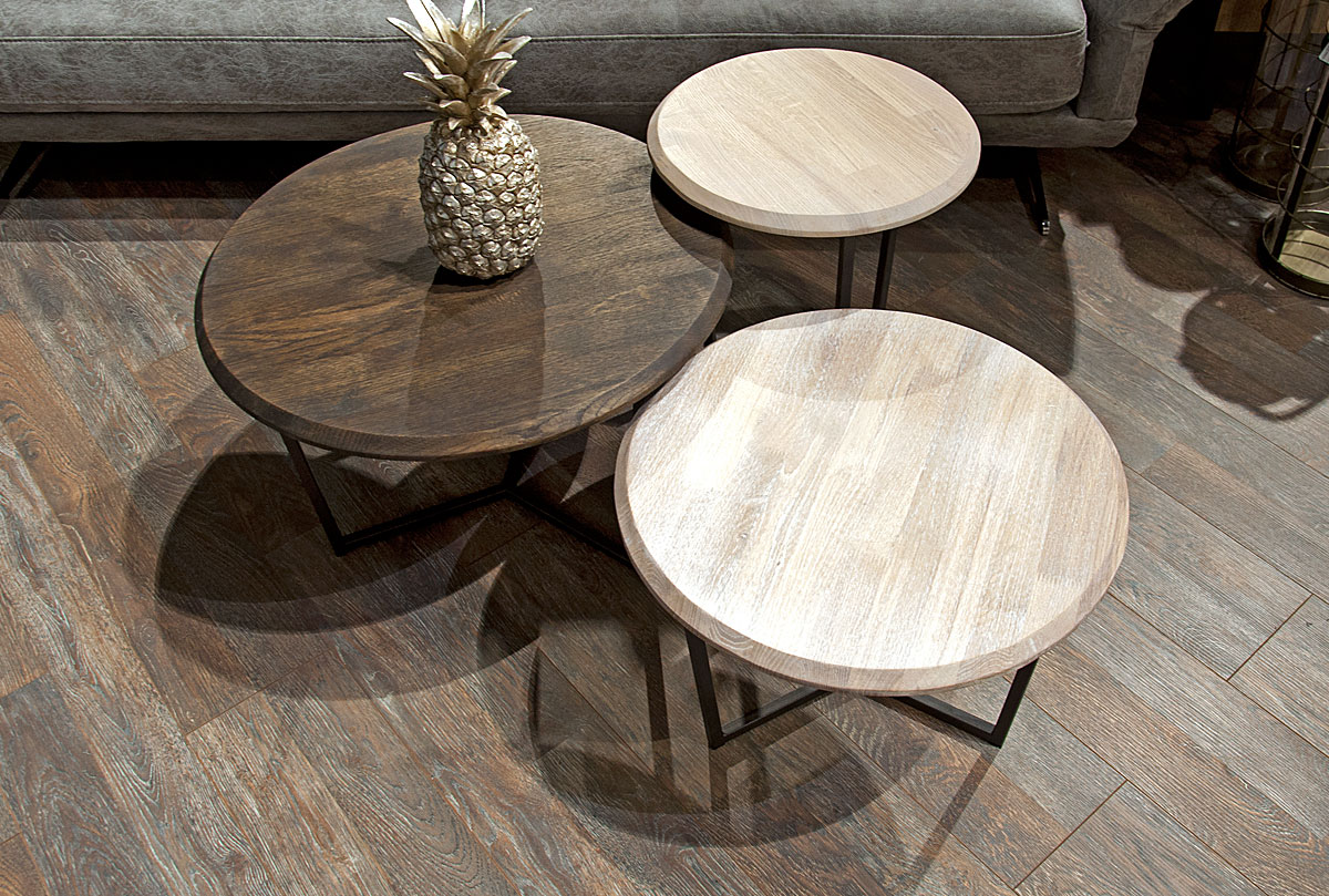 Стол журнальный "Арт" круглый 40, белёный дуб + черный металл, (.Г000037194)