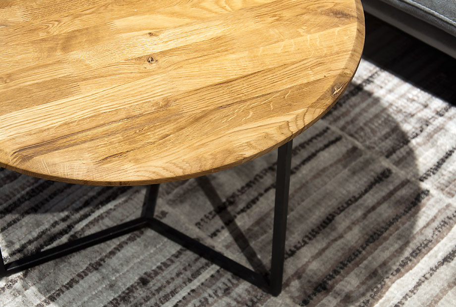 Журнальный круглый столик «Арт», диаметр столешницы 60 см в цвете «бейц-масло, чёрный металл» выполнен в современном стиле Лофт с сочетанием текстуры натурального дерева и металла.