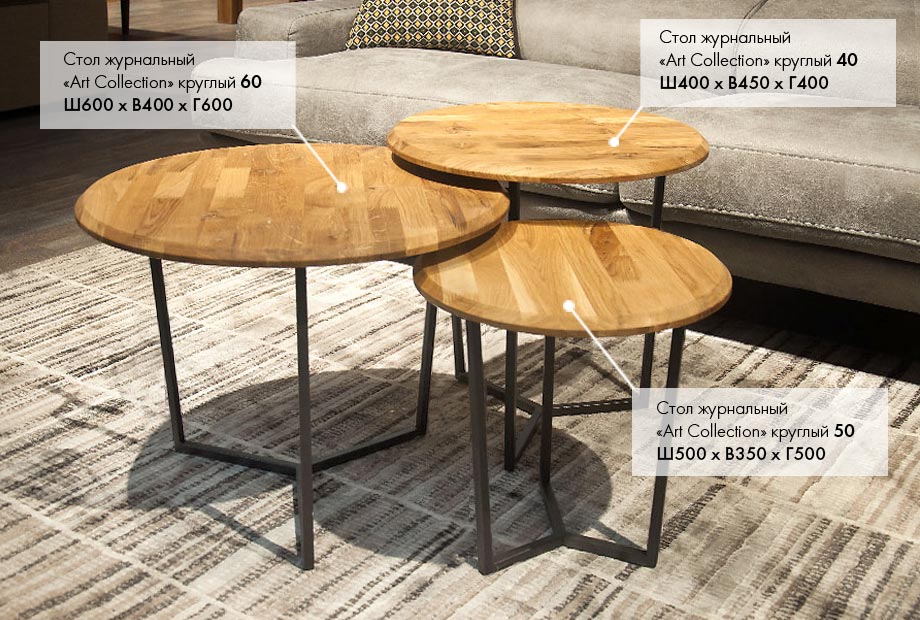 Стол журнальный "Арт" круглый 60; бейц-масло, чёрный металл