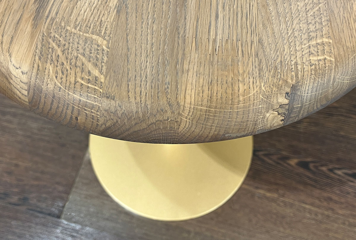 Журнальный стол «Меридиан» — это элегантная акцентная точка для гостиной. Изящная круглая столешница из массива дуба словно парит на тонкой ножке с матовым металлическим основанием. Минималистичная форма делает его универсальным для интерьеров разных стилей — от скандинавского до неоклассики.