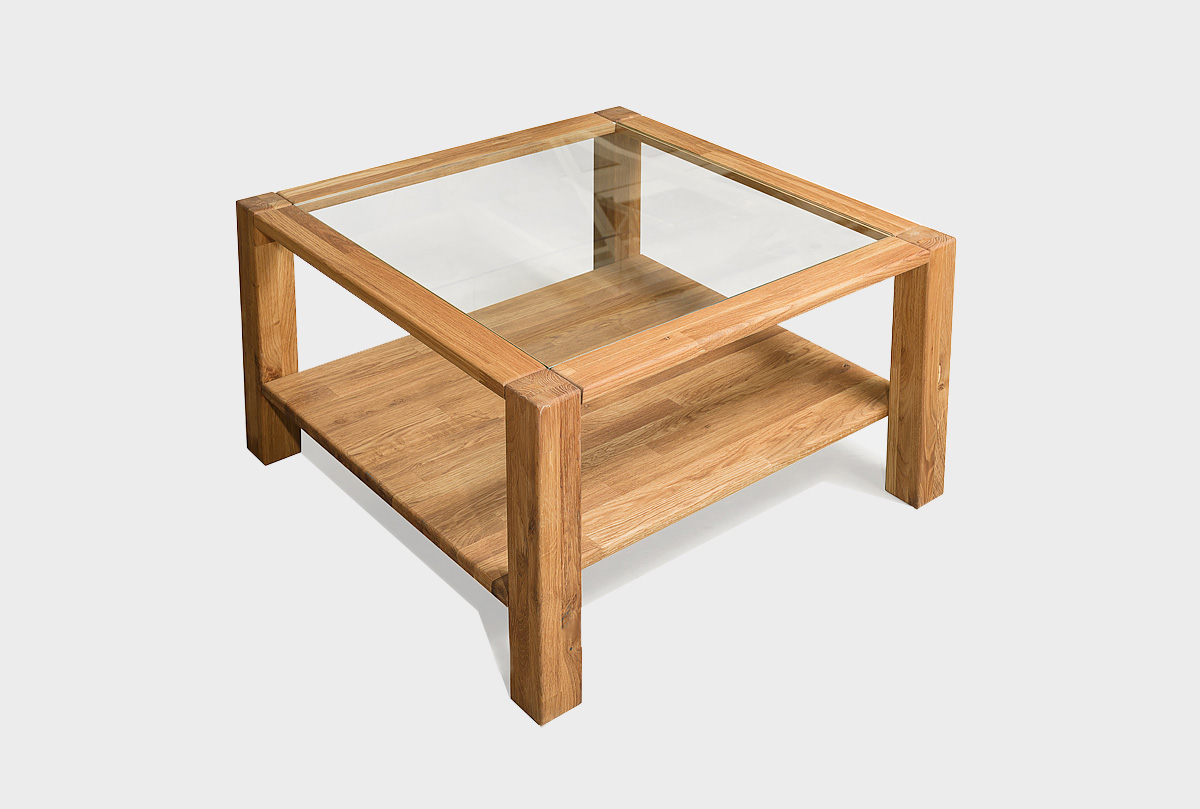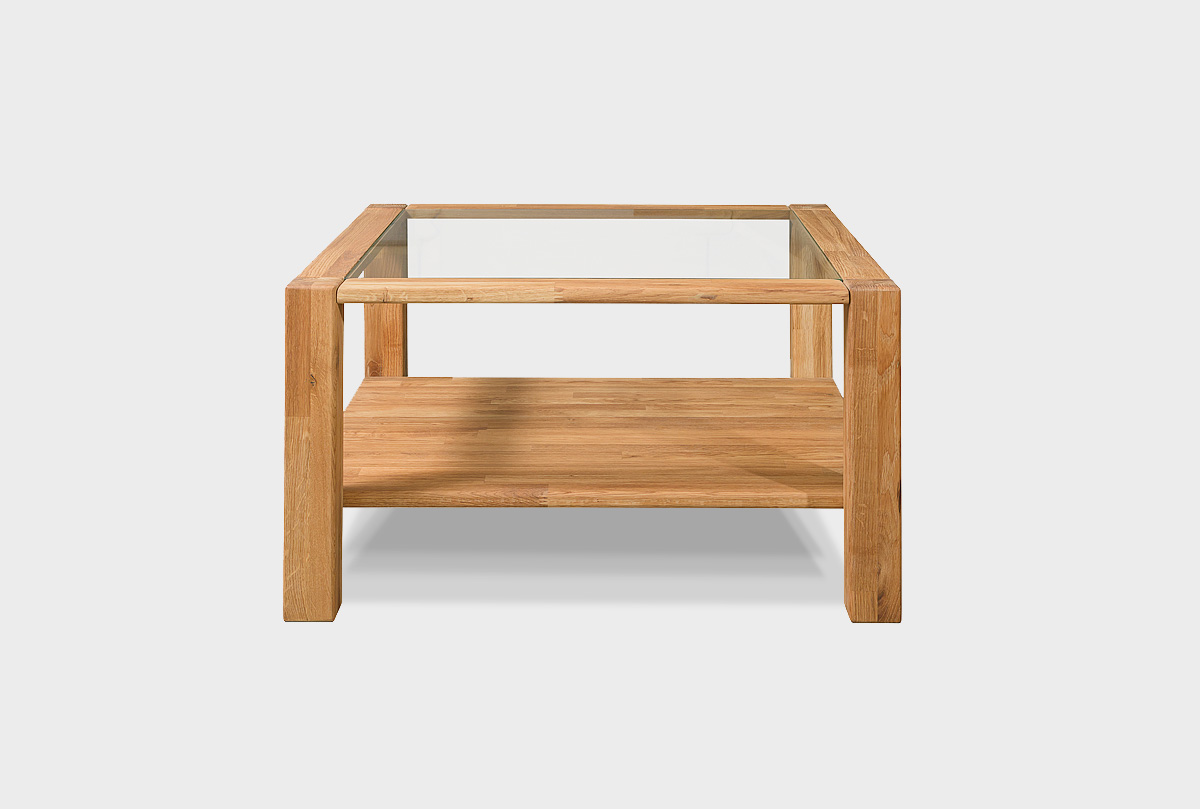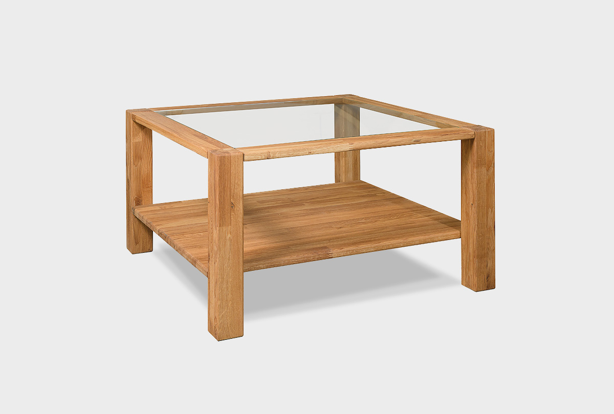Квадратный журнальный стол «Норд» со стеклянной столешницепй, 70х70 см в цвете «бейц-масло» из массива дуба в стиле Лофт для квартиры и загородного дома.