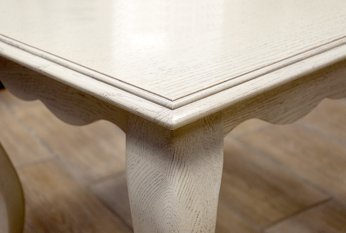 Прямоугольный журнальный стол «Тэфи» из массива и шпона дуба может стать самой выразительной декоративной деталью: его форма «подражает» всему интерьеру – она строгая, ясная и логичная. Невозможно устоять перед изысканным изгибом ножек и разнообразием цветовых оттенков изделия: «классик», «амбэр с белой патиной» и «белая эмаль с темной патиной».