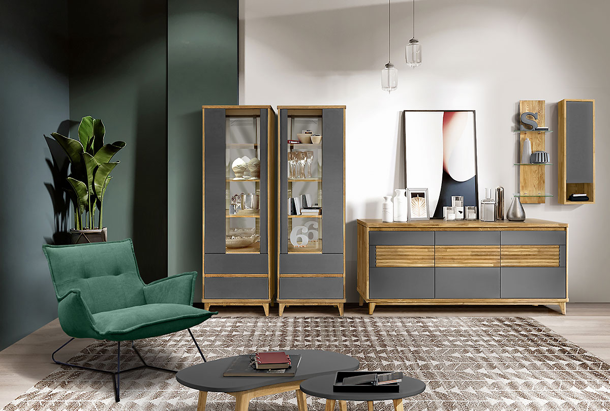 Стол журнальный "Уоллстрит" круглый 264, стл-антрацит, н-бейц-масло, (.Г000064895)