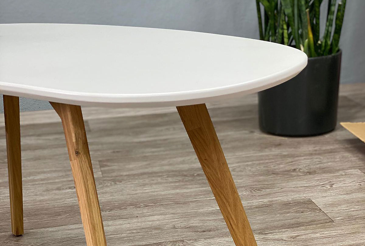 ✅ Овальный стол изготовлен из комбинации материалов - массива дуба и эмали. Из массива дуба изготовлены ножки.