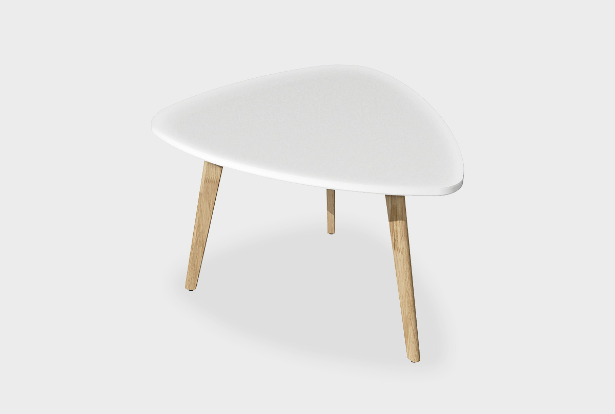 ✅ Треугольный стол изготовлен из комбинации материалов - массива дуба и эмали. Из массива дуба изготовлены ножки.