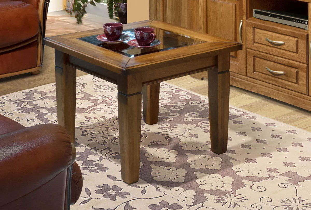Стол журнальный "Верди Люкс 4", дуб рустикаль с патиной, стекло декоративное, (Б0000000544)