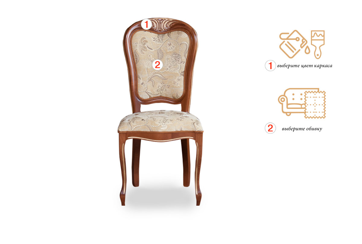 Для заказа стула «Идальго 4» Вам необходимо выбрать цвет каркаса и ткань из «Каталога обивок» и оформить заказ в корзине. Стоимость стула указана в базовой ткани и изменится если будет выбрана более дорогая ткань. Наличие выбранной ткани, стоимость и точные сроки производства данного стула под заказ Вам сообщит менеджер после получения предварительного заказа.