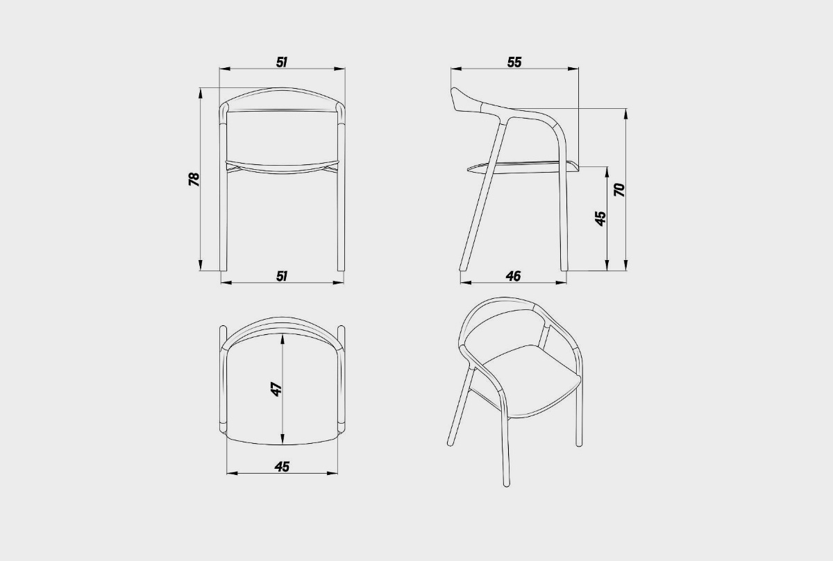 ✅ Форма стула отличается плавными линиями и гармоничными пропорциями. А высота сиденья делает его совместимым с большинством столов.
