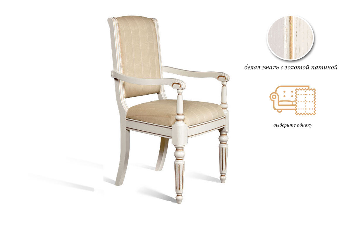 Стул с подлокотниками "Давиль", белая эмаль с золотой патиной, (Н0000000974)