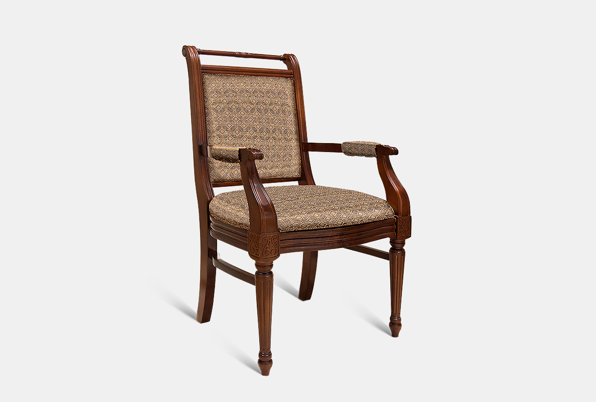 В классических традициях представлен стул с подлокотниками из коллекции «Престиж». Необычная форма резных ножек подчеркивает изысканный оттенок «мокко», «беловежский орех» и «крем с патиной». При этом главная партия в дизайне стула принадлежит, конечно, природному массиву березы, который придаст особую неподдельность вашему интерьеру. А мягкое сиденье и высокая спинка гарантируют комфортную посадку.