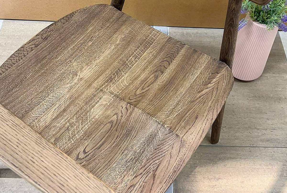 ✅ Стул изготовлен из массива дуба, что гарантирует прочность и долговечность. Тон натуральный подчеркивает текстуру дерева, придавая изделию теплый и уютный вид